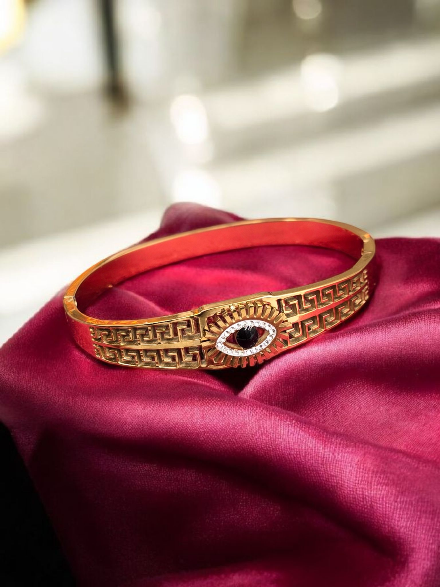 Evil Eye Cuff Bracelet – 18K Gold Plated, Waterproof & Skin-Safe